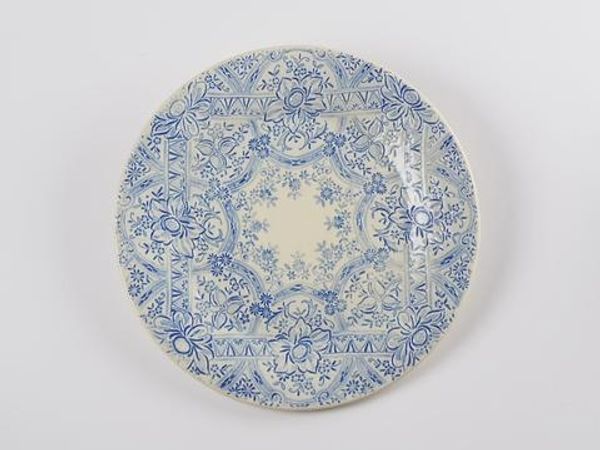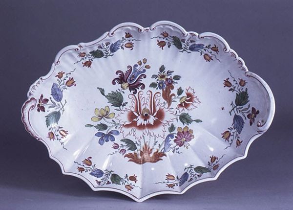 Christian Royal created this untitled ceramic piece sometime after 1993. The plate presents a striking contrast between its creamy white base and the detailed blue floral patterns, immediately drawing the eye to its intricate design. The scalloped edges enhance its decorative appeal. Royal’s decision to use ceramics, a traditional medium, grounds the work in a rich history of craft. Yet, the patterns, reminiscent of both traditional Delftware and contemporary design, introduce a dialogue about the evolving nature of art and design. The delicate floral motifs arranged in a radial symmetry invite you to consider how the piece balances utility with aesthetic expression. What we see is more than just an object; it reflects a deeper conversation about how beauty and function intertwine, challenging the viewer to reconsider the value they place on everyday objects and the art that surrounds them.