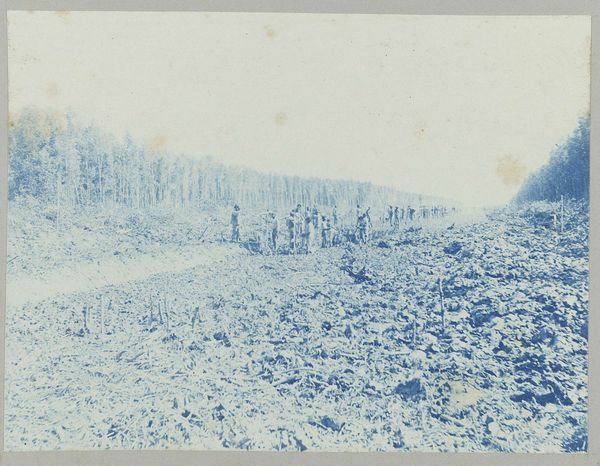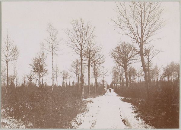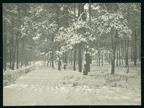 This photograph, titled "Bosrand met pad bij Arachon," was taken by Delizy, though the exact date remains unknown. It captures a forest edge with a path near Arcachon, France. The image invites us to consider the relationship between nature and human intervention. The neatly arranged trees contrast with the scattered debris on the ground, hinting at forestry practices and the management of natural resources. Given the rise of photography in the 19th century, we might ask: what role did photography play in shaping perceptions of the natural world? Was it used to promote conservation efforts or to document industrial exploitation? Understanding the socio-economic context of this photograph requires further investigation. Archival records, local histories, and studies of forestry practices in the Arcachon region could shed light on the social and institutional forces that shaped this landscape. Ultimately, this image serves as a reminder that our understanding of art is inseparable from the world in which it was created.