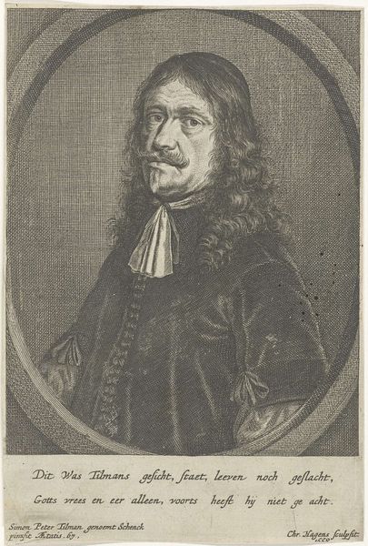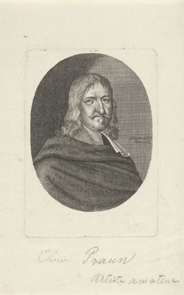 This portrait of Johannes Schelhammer was made by Johann Friedrich Bodecker, likely around 1678, and is a mezzotint – a printmaking process that relies on careful labor. Look closely, and you'll see the distinctive velvety texture. This comes from first roughening the entire copper plate with a tool called a rocker, creating thousands of tiny pits that would hold ink. The image is then created by selectively burnishing or scraping away these pits to varying degrees, allowing for different tones and shades. The labor-intensive process reflects the social standing of the sitter, Schelhammer, a prominent clergyman. The very act of creating this portrait was a marker of status, both for the subject and the artist, who had the skill to create it. It suggests a network of patronage and a society where carefully crafted images played a crucial role in establishing identity and reputation. So next time you see a print, remember the labor and the social world embedded in its making.