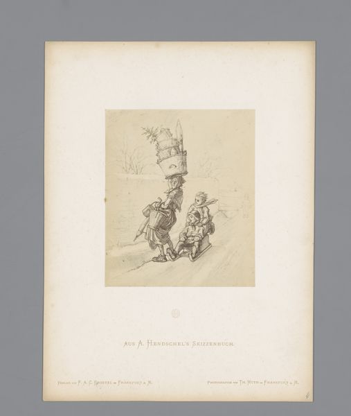 This is Theodor Huth's reproduction of a sketch by Albert Hendschel, created with an unknown medium. The piece is dominated by the monochromatic rendering and the composition confined within a circular frame. The sketch shows a young boy engrossed in painting, using a chair as his easel. Lines are delicately used to define the interior space and the boy's form, employing hatching and cross-hatching to create depth and shadow. This intricate network of lines constructs a scene that oscillates between detailed precision and suggestive form. The circular boundary serves not only to isolate the scene but also invites us to consider the very act of framing as a structural element of artistic representation, highlighting the contrast between reality and representation. The artist asks us to engage with questions about the boundaries of art, perception, and the gaze.