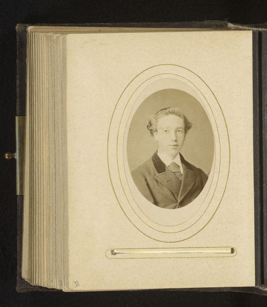 Editor: So here we have, held at the Rijksmuseum, a gelatin silver print from 1864, 'Portrait of a Man' by Bernardus Bruining. It’s oddly charming, I think. There's an honesty to the subject's gaze... What jumps out at you when you look at this piece? Curator: Well, besides hoping he's off to a grand ball - bowties always hint at hidden dances, don't you think? It whispers to me about the burgeoning middle class and their attempts to mirror aristocratic portraiture. These framed photographs allowed people to hold onto loved ones... they also created tangible reminders of absence, which, for me, makes this photograph all the more emotionally complex. What about the medium, the gelatin-silver print itself? What does that texture evoke for you? Editor: It feels… fragile. Like looking into a memory fading at the edges. Is it typical for photography of this period to evoke that feeling? Curator: In a way. The process itself was so delicate. Imperfections weren't airbrushed away like today. Each print possesses this unique alchemy of light, chemicals, and human touch. It’s like capturing a fleeting thought – the *idea* of a man, suspended in a moment. And tell me, doesn't his slightly startled expression make him so incredibly… relatable? Editor: I think it does! The imperfections and surprise make him human, rather than a godlike figure. Thank you for pointing this out! It’s easy to look at historical pieces as if they’re so far removed from ourselves. Curator: Precisely! That’s the true magic, isn't it? To discover that thread of connection, that shared humanity that binds us across time. Art allows conversations across generations.