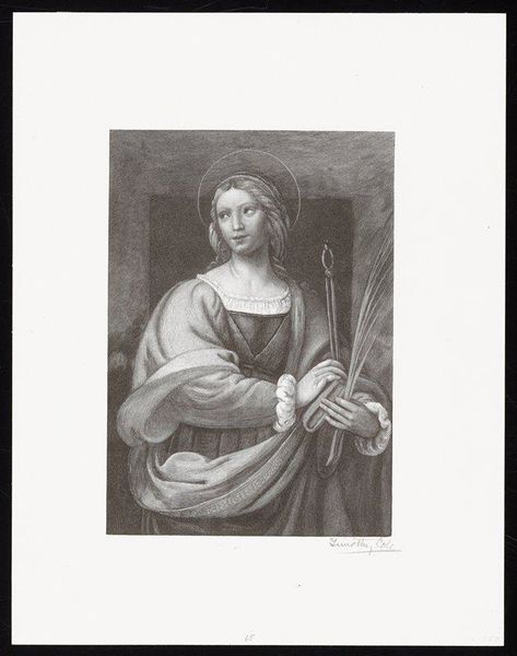 Curator: Immediately, I see an arresting study in contrasts; light and shadow, texture and smoothness. There is a tactile quality, despite it being a print. Editor: Indeed. What we're looking at is Timothy Cole’s "Sacred and Profane Love," created around 1895, currently housed at the Minneapolis Institute of Art. It's a wood-engraving print, which reproduces an earlier Renaissance painting of the same name, circa 1514, by Titian. Curator: I find Cole's wood-engraving a particularly evocative medium here, capturing the weight of tradition it evokes, the symbolic duality it explores, and the way these archetypes endure in our collective psyche. What associations does the title conjure for you, and does this representation reinforce or challenge such dualism? Editor: The title presents an immediate binary, but I am drawn more to the way Cole—and Titian before him—visualizes them. One figure is fully clothed and modest while the other, unclothed, occupies an overtly eroticized position. I see a connection to broader narratives around how women's bodies, particularly those of European descent, have been historically scrutinized. Is this image about celebrating love in all its forms, or about regulating and controlling female sexuality? Curator: I see the seated, draped figure as representing earthly love – fecundity, stability, while the bare-breasted figure with the rose is indicative of divine love, contemplation, spirituality. Editor: Is the opposition here reinforcing traditional power structures? The “sacred” seems reserved and demure, almost complicit in its containment, while the “profane” appears as exposed vulnerability. Even with the roses, the message still seems laced with control and judgment. Curator: The vase feels symbolic here, doesn't it? It appears to be classical in design and sits upon the partition separating the foreground from the landscape, potentially symbolizing the boundary or separation between different planes of existence. This vase might reflect shared or contested notions of love throughout civilizations. The act of carrying forward traditions, whether embraced or reinterpreted. Editor: These observations deepen my questions further. Thank you for the chance to revisit not just the imagery, but the ingrained systems that influence them and continue influencing what and how we value art, history, and expression today. Curator: Yes, indeed; it serves as a potent reminder of how these symbolic frameworks persist and evolve through creative engagement, continuing their quiet power to impact cultural narratives for us, as a collective.