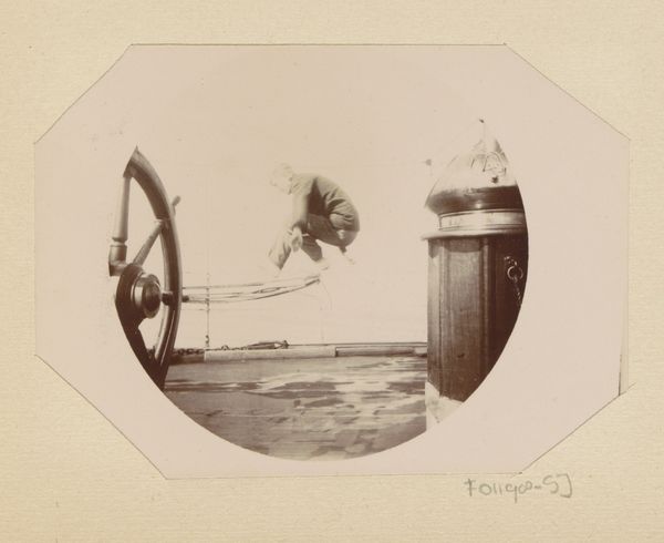 Willem Frederik Piek Jr.’s photograph captures a moment of youthful play aboard a ship in the Baltic Sea. Here, the ship's wheel dominates the composition, a potent symbol deeply rooted in our collective consciousness. The wheel, historically, is a representation of fortune, as seen in the classical Wheel of Fortune. But it’s also a symbol of control, of steering one’s destiny. Consider how this symbol of navigation and control echoes in other contexts: the celestial wheels of ancient cosmology or the cyclical nature of life itself. Yet, here, it is a child at the helm, playfully mimicking control over a vast, unknowable sea. This juxtaposition evokes a deep, subconscious recognition of the precariousness of our own control. The act of a child playing captain touches on primal emotions—the longing for mastery, the thrill of adventure, and the innocent desire to navigate the unpredictable waters of life. This simple scene resonates with the viewer because it stirs something deep within the psyche, reminding us of our own eternal dance with destiny. This emblem, ever evolving, resurfaces, inviting new interpretations across time.