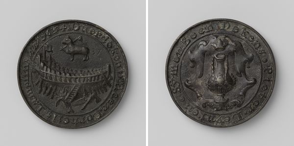 This is a civic council token, crafted anonymously from silver. Its circular form is divided into two distinct sides, each a canvas for symbolic expression. The visual field is dominated by heraldic emblems and Latin inscriptions, meticulously arranged to convey layers of meaning. On one side, a crowned shield takes center stage, its intricate details suggesting power and authority. The opposite side features clasped hands holding a bundle of arrows, flanked by stylized floral motifs. These elements, rendered with remarkable precision, evoke themes of unity, strength, and communal prosperity. The artist's careful attention to line and texture enhances the overall composition. Consider the semiotic structure at play here. The crown signifies sovereignty, while the clasped hands symbolize agreement. This token invites us to reflect on how visual symbols operate within a specific cultural context, reinforcing established values. The circular format, in particular, invites interpretation as a visual metaphor for completeness and cyclical return.