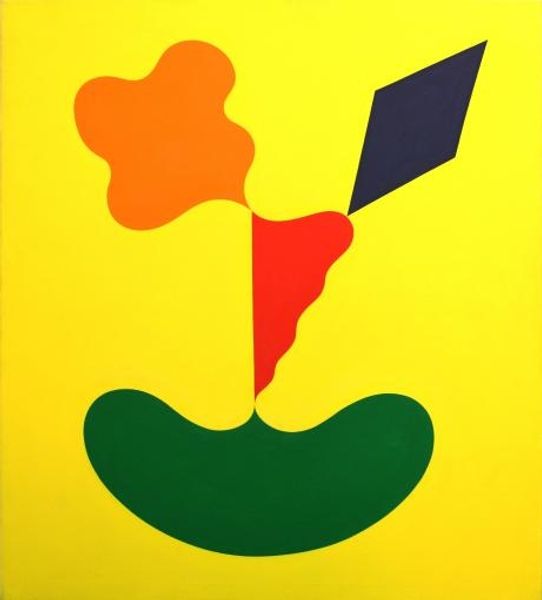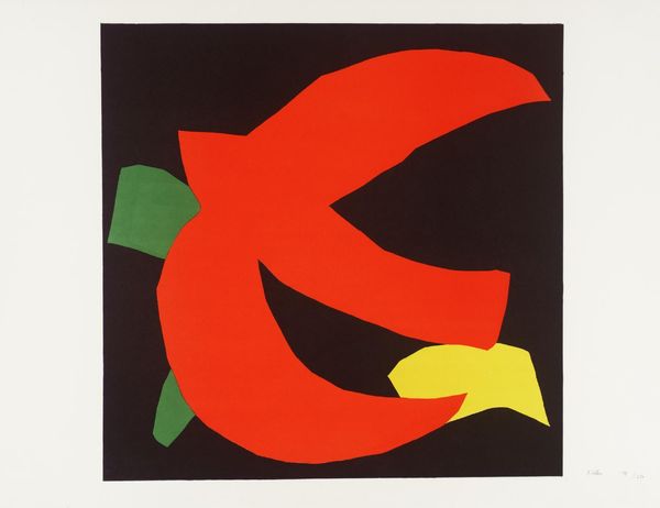 Alexander Calder made this print, Fêtes #1, using paper and simple cutting techniques. These are not traditional art materials or processes, but they can be just as impactful. The vivid blue background is the ground on which Calder arranges graphic elements. A red star sits atop a series of black shapes resembling waves. The paper is flat, but the shapes are dynamic; the star seems to burst with energy, while the waves undulate gently across the bottom of the picture. While Calder is best known for his mobiles, in this work, he's flattening sculpture into graphic form. It’s a simple composition, and the labor involved in its production is minimal; the overall effect is one of lightness and joy. Even in this simple paper-cut print, Calder asks us to think about the relationship between materials, making, and meaning. It blurs the boundaries between fine art, craft, and design.