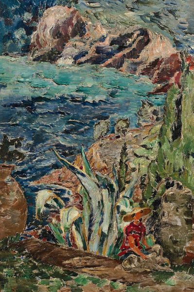 Henry Golden Dearth created this painting, “Flecks of Foam,” at an unknown date with oil on canvas. At first glance, we see an impressionistic scene of a woman sitting under an umbrella by the sea. But consider the historical context: Dearth painted this during a period of significant social change, including evolving roles for women and increasing interest in leisure and outdoor activities among the middle class. The woman in this painting appears to embody the ideal of the leisured, middle-class woman, who enjoys outdoor recreation. Yet her figure seems almost camouflaged into the rocks, which invites questions about women's visibility and agency within these social spaces. Dearth challenges traditional representations of women by not placing her at the center, but instead integrating her into the broader landscape. The emotional depth of the artwork lies in this balance, reflecting both the freedom and the constraints experienced by women in that era. The woman here seems to be part of the landscape, not separate from it.