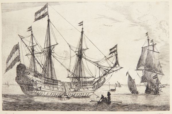 This etching by Reinier Nooms depicts a scene dominated by sailing vessels, symbols deeply intertwined with themes of exploration, trade, and power. The large ship, with its billowing sails and Dutch flag, represents not just a vessel but the spirit of Dutch maritime prowess. Consider how the image of a ship laden with sail has traversed through art history, evoking similar ideas. The ship is not merely a mode of transport; it is an embodiment of human ambition. Think of the ancient Roman ships depicted on mosaics, symbols of imperial reach. The emotional resonance of the ship image lies in its psychological association with journeys, both literal and metaphorical. It speaks to our primal desire to navigate the unknown, to confront the vastness of the world and our own subconscious. The power of such imagery engages viewers on a subconscious level, evoking dreams of adventure. The ship symbol thus progresses, its narrative evolving. Though the ship’s form and function change, it resurfaces time and again, laden with new meaning.