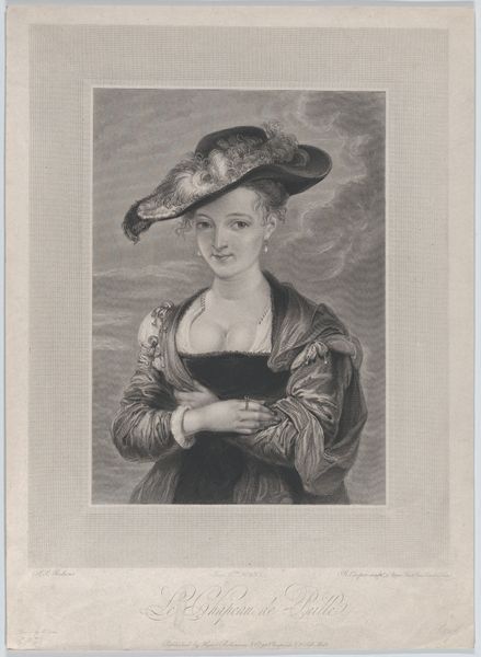 Editor: This print, "Suzanne Fourment" by Robert Cooper, dating back to the late 17th or early 18th century, strikes me as a portrait of poised elegance. What’s your interpretation of the social context surrounding this image? Curator: This image compels us to consider the power dynamics inherent in portraiture, doesn't it? How does Suzanne Fourment's representation reinforce or challenge societal expectations of women during that era? Note the controlled gaze, the opulent attire; what story do those visual cues tell about her identity and status within a patriarchal society? Editor: It’s like she is both displaying her wealth and subtly resisting the viewer’s gaze. I hadn't considered it that way. Thanks! Curator: Exactly! Now, thinking about the male gaze, how might a female artist have represented Suzanne differently, do you think?