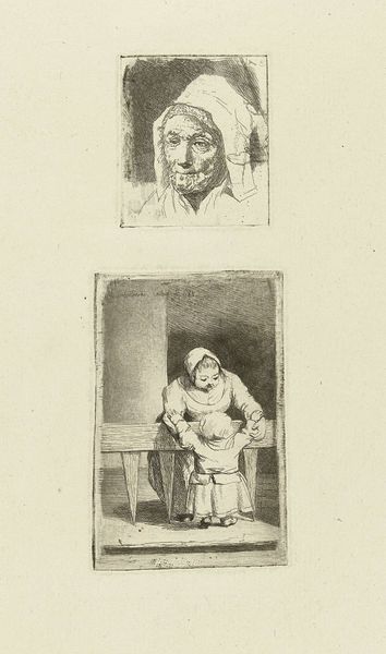 Editor: This is "Musicerende kinderen en twee hoofdstudies" – or "Musician Children and Two Head Studies" by Marie Lambertine Coclers, dating from sometime between 1776 and 1815. It’s an ink drawing on paper. The vignettes give me a sense of daily life back then...but it's also odd to see multiple, seemingly unrelated scenes on one page. How should we interpret the image? Curator: That’s a good starting point. Consider the context. The late 18th century saw a burgeoning interest in genre scenes depicting everyday life, but also the rise of academies standardizing artistic training. Coclers, working in that environment, would have understood the expectation to create finished works and also practice studies. Editor: So these are studies? Curator: Perhaps. Or perhaps Coclers intended to show the range of her skills within a single work – a demonstration of her capabilities for potential patrons. She shows us scenes of music and community alongside portraits, signaling both her observational skills and technical abilities. Who had access to education and artistic training at the time, and who didn't, is very important here. Editor: Interesting, so this isn't necessarily one artwork with a unified subject but a portfolio of skills, making a case for patronage? Curator: Exactly. Think about the politics of imagery – what subjects were considered worthy of artistic representation? Genre scenes became popular with the middle class who sought images that reflected their own lives, while portraits cemented social status. Coclers hits both those marks in a single work. How might this have impacted the distribution or value of such artwork in its era? Editor: So, reading it as a portfolio really changes my perspective. It becomes less about the specific scenes, and more about Coclers' ambition and the societal expectations around art production. Curator: Indeed. It is also about accessibility and viewership; for whom would this sheet of paper be valuable? Editor: Now, looking at it, I'm noticing more of those power dynamics! Thanks for helping me understand this on a deeper, historical level. Curator: My pleasure. Art reveals itself through asking such questions!