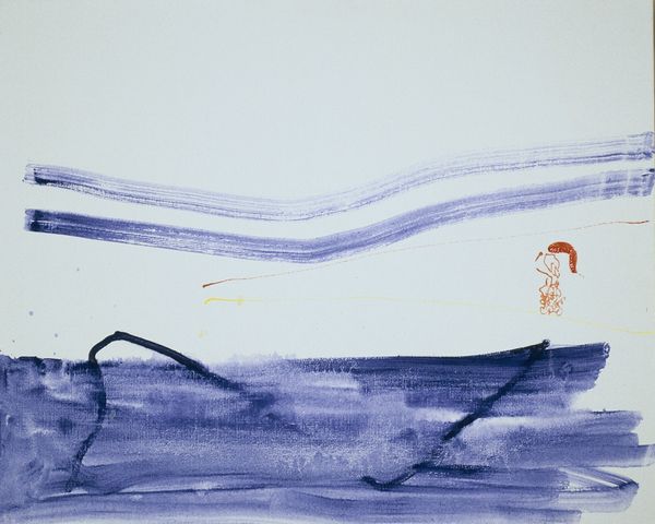 Ernst Ludwig Kirchner made this drawing of a nude bather with sailboat using waxy blue and orange crayons on paper. The artist's draftsmanship and deliberate composition elevate simple materials to fine art. The vibrant crayon lines evoke a sense of light and movement, capturing the essence of a fleeting moment. Kirchner applied broad strokes to establish the form of the figure and the surrounding scene. The inherent qualities of the crayon, its texture and opacity, lend themselves to a style of artmaking that values speed and spontaneity. The work's significance lies in its ability to bridge the gap between traditional drawing and modernist expression. With the marks of the artist's hand visible on the page, one can feel the energy and directness of Kirchner's creative process. By embracing the immediacy of crayon, Kirchner challenges traditional distinctions between fine art and everyday practices.