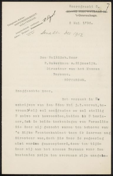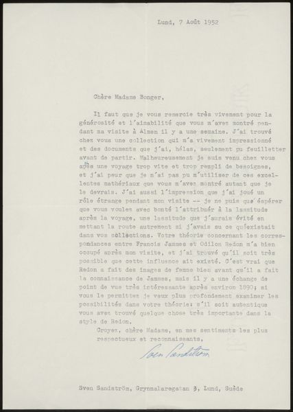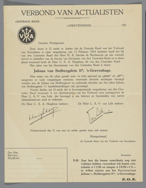 Editor: This is a letter, titled "Brief van Franz Kolb met een beschrijving voor een bestelling van foto's van de Villa Adriana te Tivoli," possibly from 1908, so quite old. It's printed in ink on paper and includes a photograph. It has an official feel, but also conveys personal intention. What resonates with you most when you look at this? Curator: The layering of images within images strikes me. The letter describes ordering photographs, themselves representations. This becomes an act of symbolic capturing. It reminds us that throughout time people are forever seeking to preserve moments, and hold onto emotional ties to the past through relics and images. How fascinating to see a description *of* images! Editor: So you see it as an artifact representing memory and the desire to preserve experience. How does the Villa Adriana fit into that interpretation? Curator: Hadrian’s Villa itself, ruins of an emperor's dream, are now doubly filtered, re-experienced through Kolb’s lens, then immortalized on paper for the letter’s recipient. These become echoes of echoes. Think of the imperial symbolism! It then extends into new ownership via photographs sold, with this letter being a crucial artifact that bears witness to the distribution, democratizing that experience. It changes meaning. Editor: So the meaning isn’t fixed; it transforms based on who possesses the images and their relationship to the original subject? Curator: Precisely! Kolb hopes these Villa Adriana photos bring to mind memories of Italy, friendships and further business—he attempts to infuse personal context into those representations. See that the “N.B.” requests acknowledgement of safe arrival— it becomes very personal. This small act shows a connection transcending commerce. How incredible! Editor: It’s incredible to consider all these layers embedded in such a seemingly simple letter. Thanks! Curator: It was a pleasure! Visual fragments speaking across time can be profound.