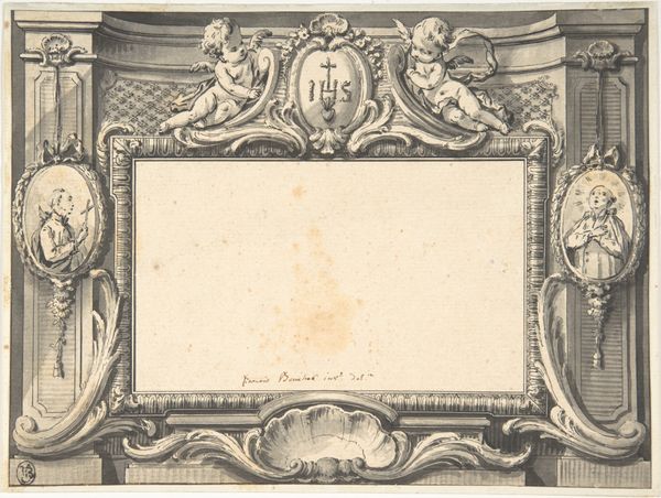 Pieter Jansz. created this rectangular architectural cartouche drawing sometime in the 17th century. Notice the acanthus leaves curling from the bottom and sides of the frame. This motif, drawn from the Mediterranean acanthus plant, symbolizes endurance and immortality. This symbol flourished in ancient Greek and Roman art, often adorning temples and public buildings to evoke a sense of timelessness and classical grandeur. We can trace its endurance through the ages, reappearing in Renaissance architecture and even in contemporary designs. Though its cultural context has changed over time, its core associations with resilience and historical continuity remain remarkably consistent. Its visual language taps into our collective memory, resonating with our deepest desires for lasting legacy and connection to the past. This cartouche, therefore, is not merely a decorative element. It's a powerful symbol that transcends time, continuously resurfacing and adapting.