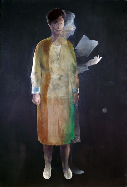 Carlos Sablòn made this painting, titled "Le Fabuliste", with oil on canvas. The painting is like a dream, one that makes you think about what you are seeing. The texture is thick with dark greens that surround a light green suit, whose head has been replaced with a mass of balloons. The suit seems oddly ordinary and the blank space where the head should be makes you wonder: what is the story here? Look at the way the paint has been applied, with strong vertical strokes in the background that feels like pushing the figure towards us. The balloons and the suit, these are solid forms made up of layers and layers of paint. It reminds me a little of Magritte, a familiar figure in an impossible scenario, asking us to reconsider what is real and what is not, with a touch of humour. Art is a journey, right? A puzzle with many answers.