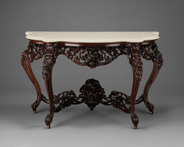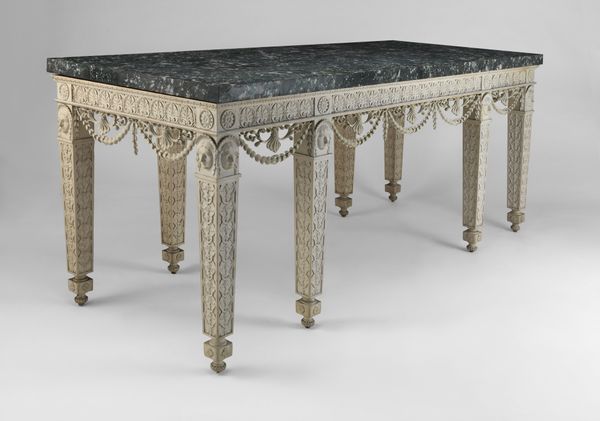 This side table was designed by William Kent, probably sometime in the first half of the 18th century, made of carved and painted wood, with a marble top. The design is exuberant, even a little absurd. We see sea monsters at the corners, garlands of leaves and shells festooning the frieze. All of this ornament was achieved by highly skilled woodcarvers. The tabletop is heavy and has a tactile quality that appeals to our sense of touch. But it is the base of this table that's really interesting. The artist has demonstrated incredible skill in manipulating and transforming the wood. Think about the labor involved. This table is not just a functional object, but a symbol of status and wealth. These kinds of objects were a vital part of the 18th century economy. The division of labor could be extreme. The marble could be quarried and the wood could be sourced from British forests. The side table would bring together the work of many hands, including those we don't normally consider when assessing a work of art.