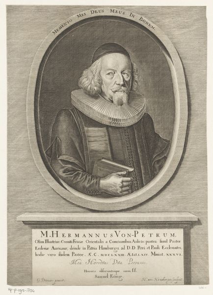 This print of Ambrosius Gesner was made by Matthias van Sommer, using a technique called engraving. This intaglio process involves incising an image into a flat surface, in this case a metal plate, from which multiple impressions can be pulled. The lines you see are the result of the artist using a tool called a burin to cut into the metal. Ink is then forced into these grooves, and the surface is wiped clean. When paper is pressed against the plate, the ink transfers, creating the image. The texture and weight of the paper itself contribute to the final product. Each print is a direct result of the labor-intensive process. The controlled lines describe Gesner’s features and clothing, and these could be reproduced and distributed widely. The act of making this portrait is inseparable from its social and cultural context, reflecting emerging visual media and consumer culture. Consider how this process contrasts with more individualistic methods, like painting or drawing. Engraving allows for wider dissemination and speaks to the changing nature of artistic production at this time. It blurs the line between fine art and a kind of publishing.