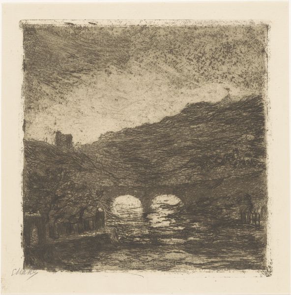 This print, "Sandbagger an der Elbe", was made by Ernst Ludwig Kirchner using etching, a process dating back to the Middle Ages. The image begins with the application of a waxy ground to a metal plate. Kirchner then scratched through the ground with a needle, exposing the metal. Immersing the plate in acid, he created incised lines. The ink settles into these lines, and is then transferred to paper under great pressure. Kirchner was a master of this process, and you can see how he used it here to give a snapshot of laborers working along the Elbe River. Notice the stooped figures, set against a landscape overwhelmed by industrial activity. The expressive lines evoke the hard work and physical strain involved in filling sandbags, essential for construction and flood control. Kirchner's choice of etching, with its roots in craft, underscores the dignity of labor and the importance of understanding art through its making.