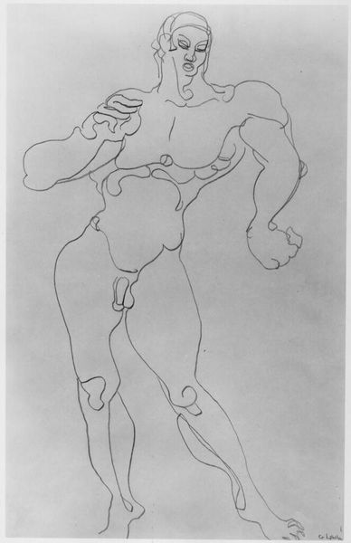Editor: This is Gaston Lachaise's "Female Nude," a striking line drawing. It's sparse, almost effortless, yet the figure feels so monumental. How do you interpret this work? Curator: Look closely at the line itself. It’s not just describing form, it’s enacting labor. The very act of drawing, the deliberate application of ink, becomes a negotiation with the cultural construction of the female body and its representation. Editor: So you see the line as a kind of…struggle? Curator: Exactly! Lachaise isn't passively recording; he's actively shaping, responding to, and perhaps even challenging the commodification of the female form. It’s the means of production made visible. Editor: That gives me a totally different way to appreciate it. Thanks!