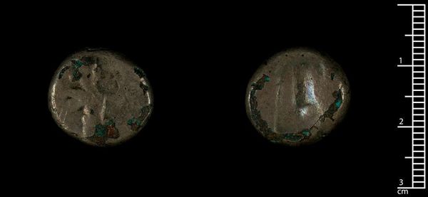 Curator: This coin, created during the reign of Elagabalus, is a fascinating object. Editor: It looks like it’s taken a beating. I'm immediately drawn to how worn the metal is, bearing the marks of circulation, use, and time. Curator: Indeed. It’s a coin from Aelia Capitolina, minted under Elagabalus. Notice how the imagery echoes themes of imperial authority and divine sanction. Editor: And what was this made of? The production of coinage tells us so much about resource control, trade routes, and the status of the emperor himself. Curator: I see layers of meaning in the degraded state. The wear and tear almost humanize the emperor, allowing us to connect with the past on a material level. Editor: Precisely. What we see is more than just iconography; it’s labor, access to materials, and the economics of power expressed through this humble object. Curator: This coin serves as a relic of cultural memory. I appreciate that we can see the divine right of emperors imprinted on an everyday object. Editor: Right. It is a confluence of symbolic weight and material evidence, isn't it? Curator: Absolutely, the coin speaks volumes about the emperor’s reign. Editor: Yes, it certainly does.