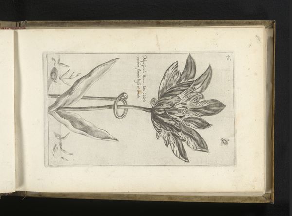 Curator: This is a drawing entitled "Lelie," created in 1617 by Crispijn van de Passe the Younger. It's currently held in the collection of the Rijksmuseum. Editor: It's beautiful. Such intricate linework. You can almost feel the aged paper; the monochromatic sketch gives a tangible sense of history. Curator: Absolutely. Passe was known for his meticulous detail, and you see that here. The medium is pen and ink on paper, common at the time, but his rendering of the lily is exceptional. Consider also that illustrated catalogs like these supported the botanical trade. Editor: The context of its creation is also significant—what do we know about where the paper came from and the types of ink and pens that would have been available to the artist? And was this purely artistic exploration, or was this flower a commodity? Curator: We know that Dutch paper production was thriving during this period. The labor involved in both making the paper and the meticulous process of creating the botanical illustration indicates a value was already implied on natural subjects and artistic production. It really puts into perspective the role these images played in wider societal attitudes. Editor: I like to consider these botanical drawings as labor intensive artworks, and not purely objective documentations. Curator: Agreed, though their supposed objectivity served specific interests. Disseminating visual knowledge about newly discovered species through prints helped to cement Dutch scientific and economic dominance, so Passe's work was also participating in these larger power dynamics. Editor: It's amazing how something as simple as a flower drawing can reveal so much about the world in which it was made, don't you think? Curator: Precisely, a reflection of nature filtered through social, economic, and artistic practices.