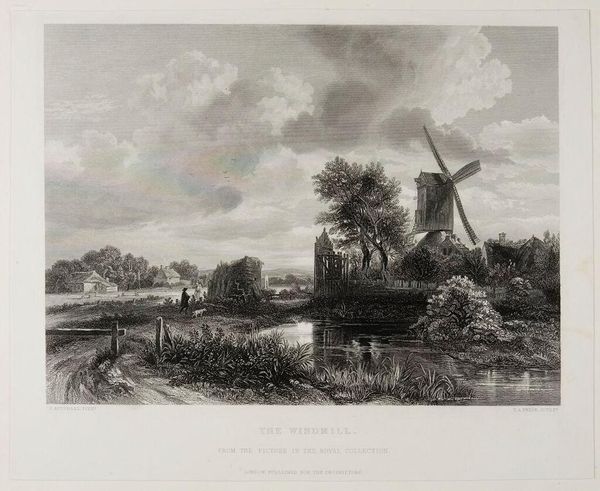 Curator: This is "De Tabley Park" by Thomas Abel Prior, currently held in the Harvard Art Museums. What's your initial impression? Editor: It feels… melancholic. The somber tones and the looming clouds evoke a sense of quiet contemplation, don't you think? Curator: The monochrome lithography certainly contributes. The composition, with its strong horizontal lines and that striking vertical tower, creates a compelling spatial tension. Editor: It also prompts questions about the role of the landed gentry and the changing landscape of England during this era. The inclusion of grazing cattle points to themes of land use and agricultural practice. Curator: Indeed, the image's formal elements mirror its socio-historical context. The gradation of light and shadow creates a dynamic relationship between the static architectural elements and the organic forms. Editor: A fitting landscape reflecting broader shifts in the socio-political climate of its time, even in its aesthetic rendering. Curator: Precisely. These formal choices and historical contexts enrich our reading, giving voice to broader cultural narratives. Editor: Agreed. It’s in this intersection of form and history that the work truly resonates.