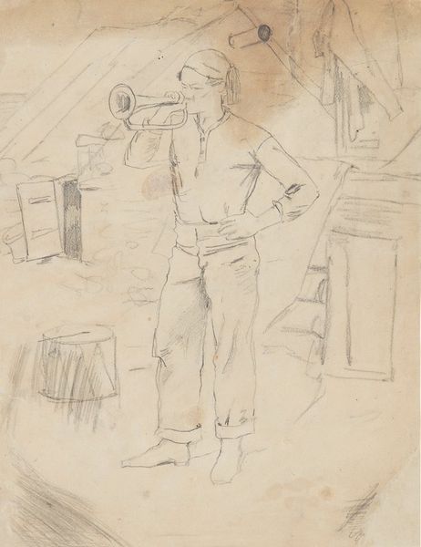 Childe Hassam made this drawing of a fisherman on the Isle of Shoals with crayon, or maybe pastel, back in 1903. Look at how Hassam creates the waves with these horizontal strokes, like the ocean is a series of thoughts. The thing I love most about this drawing is the way he uses color to build form. See how the fisherman’s overalls aren’t just blue, but have hints of red and brown that suggest light and shadow? It reminds me of Cezanne, who also built up forms with color, and it makes me think about how process is a form of thinking. I mean, the fisherman himself is composed of hatched lines, each one building up to make the whole. It's like Hassam is saying something about how we’re all just a collection of moments, gestures, and colors. So, I'd say it embodies how art is just a conversation.