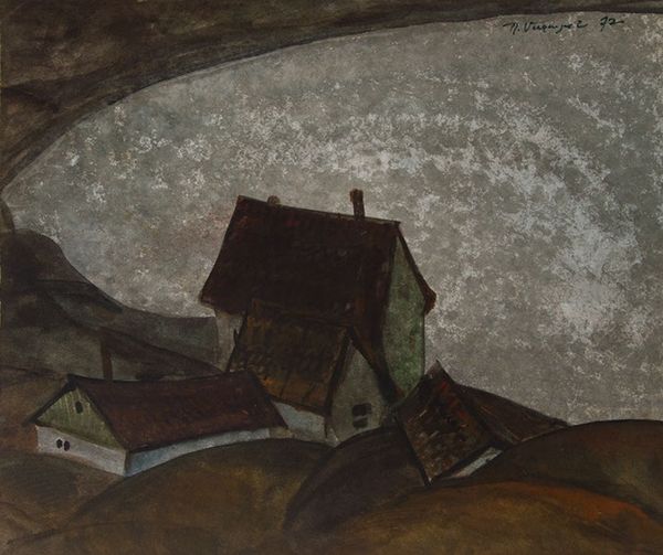 Curator: Petros Malayan’s “Shop Fair," created in 1972, seems to portray a bustling marketplace scene rendered in, perhaps, mixed media? The tags indicate watercolour and coloured pencil, but also the suggestion of an acrylic underpainting, making it difficult to confirm what exactly. What’s your initial impression? Editor: I’m immediately struck by its somewhat melancholic, almost sepia-toned palette. It definitely evokes a sense of movement but also feels somehow trapped in history, like peering into a world long past, maybe suggestive of historical inequities linked to trade? Curator: Absolutely. The technique itself seems to embody that tension. Looking closer, the linework seems almost hurried, practical, possibly referencing the fast pace and labor conditions involved in the original event represented here. How do you see this reflected socio-historically? Editor: Well, fairs throughout history have been places of exchange, both of goods and ideas. I find it impossible not to view the crowded space depicted here with an awareness of hierarchies operating within markets and even their accessibility to varying social strata. The people and what they may own and do not. Curator: Interesting. Speaking of production and making visible...I'm curious if there are artistic influences that he brings to his work? It is unclear based on what’s listed of the different artistic gestures made, but something I would pursue, that you would likely then view from your political lens. Editor: Most likely. In a period where cultural identity was suppressed by Soviet Ideology, even simply turning toward national subjects, as in fair representation of the pre-modern market, itself has activist and oppositional implications in its moment, speaking through national themes even during periods of assimilation and integration by the Communist government in Armenia in this time. Curator: It speaks, however indirectly, about social organization through commodity exchange which reflects how communities organized themselves on a practical, day-to-day basis. These interactions and the objects themselves contain narratives reflecting labor and local tradition. It suggests cultural continuity while documenting the transient moment of trade within a space of exchange, no? Editor: Definitely. Its muted tones speak volumes, echoing themes of memory, loss, but also endurance that become prevalent themes when considering post-Soviet identity, even decades later. Curator: Well, it's undeniable that this "Shop Fair" leaves us with much to consider concerning artistic process, material use and that of its context as well. Editor: Indeed. The layers of historical implications layered into what, at first glance, seems a relatively simple scene, continue to reverberate.
