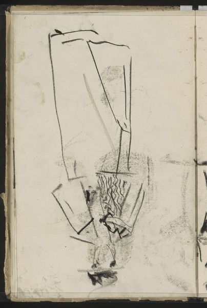 Editor: We are looking at "Plantestudie", a study of plants done between 1906 and 1910 by Niels Larsen Stevns, rendered in pencil and colored pencil on paper. I'm struck by how skeletal it feels, even though it's nature, with very angular drawing. How would you interpret this piece? Curator: Primarily, I see a focus on line and form. Consider how the artist uses contour lines to define the leaves, employing varying weights to suggest depth and shadow. It is interesting how hatching describes space, with the cross-hatching behind the upper plant, contrasting with the flat line representing ground near the base. Do you see that relationship? Editor: Yes, I see the contrast! So it's less about depicting nature accurately and more about exploring the language of drawing itself. Curator: Precisely. Note the negative space too. The white paper becomes just as important as the drawn lines. This, in turn, prompts us to question the nature of representation. To what extent does this drawing communicate a concrete sense of ‘plant,’ and to what extent is it a study in abstraction? Editor: That's a really interesting way to put it. It almost feels like a map of a plant, more than a portrait. Curator: Precisely! Furthermore, the layering and the unfinished quality give the image a sense of dynamism. The artist shows us the process, and not just the finished product. It is both study and object, simultaneously. Editor: I hadn’t considered that aspect of it. Thanks for showing me a new perspective! Curator: It is my pleasure. Visual literacy asks us to decode images beyond subject; we look closely to question the formal strategies employed by the artist and how those choices manifest meaning.