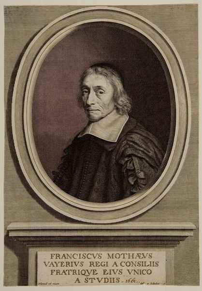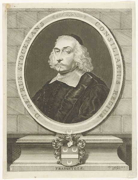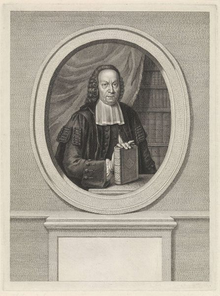 Curator: This is a print from 1792 entitled "Portret van Didericus Adrianus Walraven," by Theodoor Koning. Editor: My first impression is the formality—a reserved almost austere quality conveyed in the limited tonal range and controlled lines of the engraving. It feels very much of its era. Curator: Absolutely. The print exemplifies Neoclassical portraiture in the late 18th century, mirroring the era’s embrace of reason and order, while deliberately eschewing any suggestion of flamboyance and aristocratic excess. It would have circulated among a literate, civically engaged elite, eager for portraiture as history-painting, demonstrating a life lived in public service. Editor: Note the subtle yet pronounced pyramidal composition and the strategic positioning of the subject, the lines are impeccably organized. But I am struck by how the gaze almost punctures the reserved mood; his expression is probing, unsettling. There’s a tension created by it. Curator: True, the engraving uses the visual language of civic virtue. Its existence reveals how cultural elites deployed printmaking as a key technology to disseminate ideals during a period of revolutionary upheaval. I wonder how widely it circulated and whom it sought to persuade? Editor: To me, the meticulous cross-hatching transcends mere representation; they serve as abstract patterns which enhance the picture. The formal language speaks to the very nature of representation in the late eighteenth century. Curator: Precisely. Through a close analysis of its materiality and construction, one gains deeper insight into its original societal function. It makes me contemplate its audience. Editor: I'm left pondering the interplay between personal likeness and its function. Koning was incredibly astute in conveying the sitter's psychological disposition and using it to shape social meaning. Curator: For me, it reveals the power of images to not only depict individuals but also to uphold values in an era that was rapidly shifting.