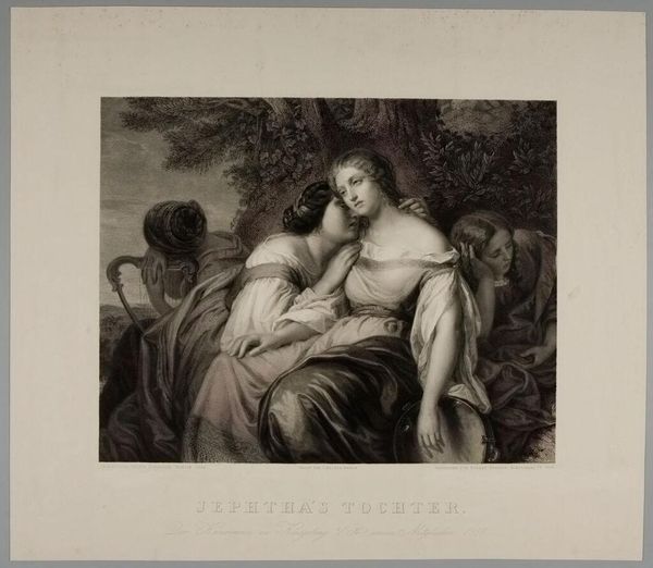 Curator: This is Bernardino Consorti's "Entombment," an early 19th-century engraving. The somber scene depicts Christ being laid in the tomb. Editor: There's a real sense of heavy grief here. The stark contrasts created by the engraving heighten the drama and emotional weight of the scene. Curator: Consorti’s use of engraving allowed for the wide distribution of religious imagery, shaping popular understanding of biblical stories through affordable prints. The printmaking process itself becomes a vehicle for religious education. Editor: Absolutely. And the choice of subject matter—the entombment—highlights a pivotal moment of mourning, inviting viewers across centuries to grapple with their own mortality and beliefs. Curator: Precisely. The "Entombment" serves as a potent reminder of how art shapes not only our aesthetic tastes but also our understanding of the human condition and its cyclical relationship with loss and faith. Editor: A somber reflection, but a valuable one.