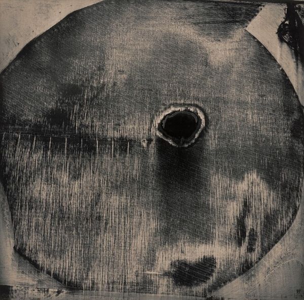 This small photograph by Myra Greene presents a close-up view of an ear, rendered in dark, moody tones. It feels almost like a drawing or print. The tonal range moves between velvety blacks and nuanced grays. What strikes me is the texture. It’s hard to tell exactly what kind of process was used to make this, but it seems like the image emerges through the layering of light and dark. Look how the subtle gradations around the ear suggest a landscape or skyscape rather than just skin. There are all these beautiful, subtle variations in the blacks and grays that create depth and dimension. That little white point in the middle of the ear is like a star, drawing you in. It reminds me of the work of Dawoud Bey. He also used photography to explore identity and representation, and this ear becomes a potent symbol. Is it listening? Is it a sign of openness? There's no definitive answer, which is what makes it so compelling. It’s an open question, and that’s where the beauty lies.