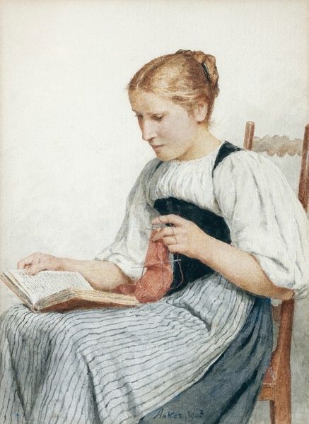 Albrecht Anker painted this serene scene of a young girl knitting, capturing a quiet moment of domesticity. Anker painted in Switzerland in the late 19th century, a period where rapid industrialization began to clash with traditional rural life. Here, the young girl embodies a certain ideal of childhood innocence and domestic virtue, her concentration fixed on the task at hand. Her youth and gender subtly highlight the societal expectations placed upon women to master domestic skills. Note how Anker uses light to soften her features, presenting a figure of purity and diligence. The books on the table imply some level of education, yet her primary role, as depicted, remains within the domestic sphere. The act of knitting itself speaks to a slower, more deliberate way of life, one that is increasingly at odds with the burgeoning industrial age. This work invites us to reflect on the value of such labor, and the quiet dignity of everyday life.