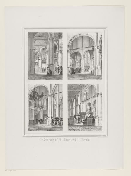 Giacomo Brogi created this photo titled "Gezichten op het interieur en exterieur van het Certosa di Pavia" sometime in the mid-19th century. The image is a series of photographs of the Certosa di Pavia, a monastery complex in Lombardy, Italy. Brogi was part of a generation that saw photography as a means to document and celebrate Italian cultural heritage. This photograph isn't just a neutral record; it's a carefully curated presentation of Italian grandeur, meant to evoke a sense of national pride. Brogi’s images reinforced the prevailing cultural narratives of the time. They were part of constructing a unified Italian identity that often privileged certain narratives, particularly those of the dominant social classes. Consider how the architecture itself—grand, imposing, and overtly religious—reflects a specific set of values. It speaks to power, faith, and history, but perhaps less so to the everyday lives of the people who lived and worked in its shadow. These images invite us to think about who gets to shape the stories we tell about ourselves and our shared spaces.