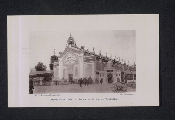 This photograph by Th. Lantin captures the Egyptian pavilion at the World's Fair in Antwerp. It's a sharp reminder of the kind of cultural appropriation that was common at these events. Look closely, and you'll notice the materials used aren't traditional Egyptian construction. It's more likely plaster and wood, quickly assembled to evoke the exotic. The architecture is a pastiche, leaning heavily on surface decoration rather than structural integrity. The photograph itself, a relatively new medium at the time, flattens the three-dimensional reality, further emphasizing the constructed nature of the display. This wasn't about authentic representation, but about creating a spectacle for mass consumption. World's Fairs were engines of capitalism, showcasing not just goods but also cultural fantasies. This image serves as a potent reminder that what we often perceive as 'high culture' is deeply intertwined with issues of labor, politics, and the marketplace.