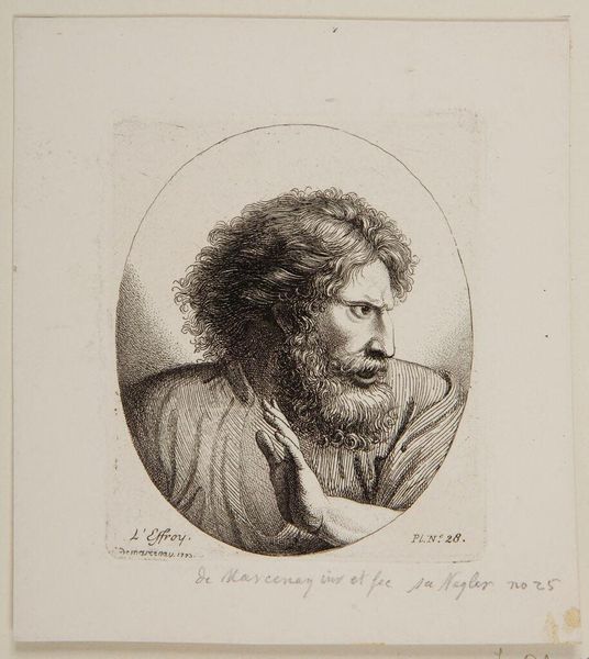 Curator: The work before us is an etching by Antoine de Marcenay de Ghuy, titled "Old Man with Beard and Cap." It’s a small piece, dating back to 1755 and currently residing in the Harvard Art Museums. Editor: Immediately, I'm struck by the figure's weariness, a kind of burdened wisdom etched into those lines. The cap and beard lend him an almost biblical gravitas. Curator: Right, the artist here grapples with representing age and experience. This period saw increased interest in portraying individuals from all social strata. Do you think it succeeds in offering a realistic depiction? Editor: I think so. There is an honesty in the portrayal—a lack of idealization. That rumpled cap, the lines in his face. They are not just marks of aging, but symbols of a life lived. Curator: Perhaps this speaks to how the Enlightenment began challenging aristocratic ideals, pushing for a more egalitarian view of humanity. Editor: Yes, and as a symbol, this old man resonates across time, embodying the collective memory and wisdom of generations. Curator: Indeed, looking at this portrait offers a lens through which we can examine evolving social values. Editor: It's a reminder that even within a small frame, an artwork can carry profound cultural weight.