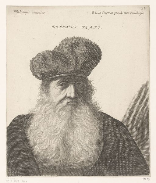 Curator: Here we have "Portret van de Grote Nogai van Perzië," a Baroque engraving created sometime between 1615 and 1647. Editor: Wow, the detail is amazing for an engraving. He looks...powerful, doesn't he? But also tired. I'm immediately drawn to the eyes, and the beard of course. It feels like a very intimate study, even though he’s a ruler, right? Curator: Precisely. The engraving technique, with those fine lines, really lends itself to capturing the texture of his beard and the folds of his garments. This portrait freezes in time an idea of Persian nobility. The attire, especially the headwear, signals power, linking him to a specific historical and cultural moment. Editor: It's interesting how clothing speaks across time. I'm fascinated by that headpiece, It has got some jewells or spikes, I am not sure and I start wondering how heavy and symbolic it would have been. I'd love to know more about Nogai himself, like did he *feel* like wearing it everyday. Curator: It's fascinating to consider how objects carry symbolic weight. Consider too how the piece invokes orientalism from a Western European perspective. The image participates in a visual language about Persia and its leaders, shaping perceptions even today. Editor: And maybe even misperceptions? Like the visual vocabulary is kind of removed, even, distorted in translation from that period. I love these old engravings that, you know, make me think beyond just the image, right, and think about how history is constructed, passed down, perceived by different minds. Curator: That is precisely the power of visual symbols. They embed memory and project cultural continuity, while always open to new interpretations and understandings across time. Editor: Well, it has definitely inspired me to dig a little deeper into the Great Nogai and Persia. And maybe to even start sprouting a majestic beard.