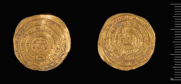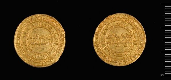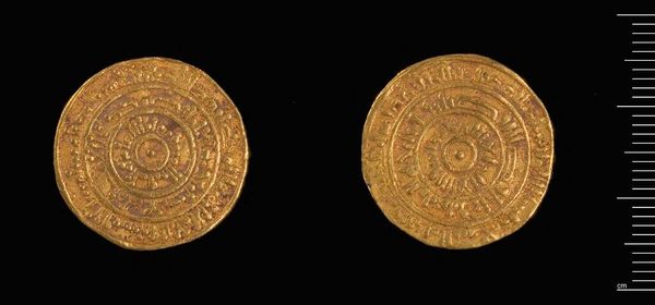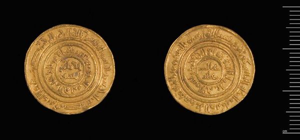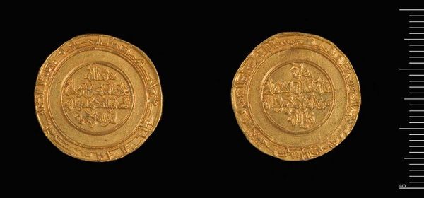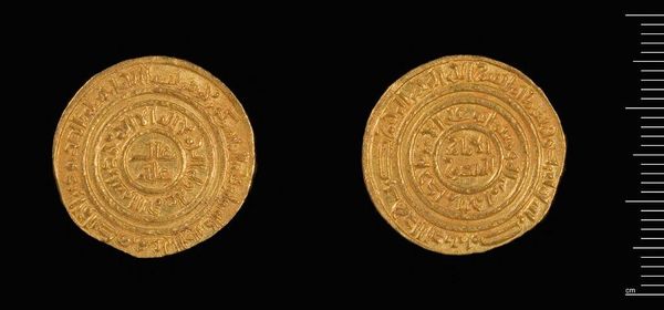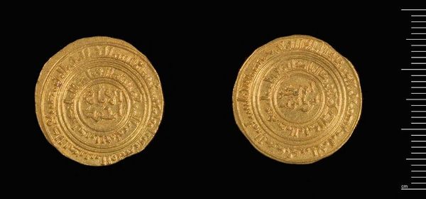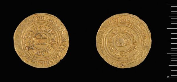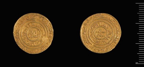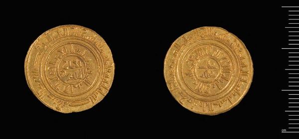 Editor: This is a gold Dinar of al-Amir from Misr. The inscriptions are beautiful. What do you see in this piece beyond its monetary value? Curator: The imagery speaks volumes. Consider how inscriptions, often religious or political, were literally impressed upon people's daily lives through currency. The act of exchange became a constant negotiation with symbolic power. What stories do you think this coin could tell about the ruler who minted it? Editor: I never thought about it that way! It's like a portable propaganda piece. Curator: Exactly. Coins are little time capsules, carrying intentional messages across generations. Editor: I’ll definitely look at coins differently now.