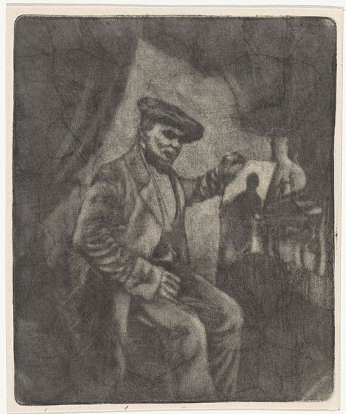 This is a portrait by G. Hidderley, depicting a man in traditional Volendam attire, captured through photography. The image's grainy texture tells us something about the process of its making. In Hidderley’s time, photography was a relatively young medium, reliant on specific chemical processes and equipment. The shades of gray, the contrast and the focal depth achieved here resulted from a complex interplay between light, lens, and photosensitive materials. This play between science and art makes you consider the photographer's skills in manipulating these elements to capture not just an image, but also a sense of character and place. It also makes you aware of the labor involved, from setting up the shot to developing the print in the darkroom. By considering these aspects, we can appreciate the artistry involved in photography, recognizing it as a skilled practice with its own rich history.