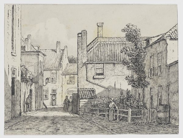 Georg Melchior Kraus made this ink drawing of a tavern in Kunitz near Jena. His work captures a moment in Germany during the late 18th century, a time marked by significant social and political change. Kraus’s detailed rendering of the tavern, situated alongside the worn archway, invites us to consider the intersection of public and private life in this era. The presence of a woman drawing water suggests a narrative about the daily labor and the roles women inhabited within these communities. We can only imagine the conversations, transactions, and social interactions unfolding inside the tavern. The image doesn’t shy away from the presence of crumbling infrastructure, reminding us of how social histories and personal experiences are woven into the fabric of our environment. "Wirtshaus in Kunitz bei Jena" gently reflects the everyday lives of people and the environments they shape.