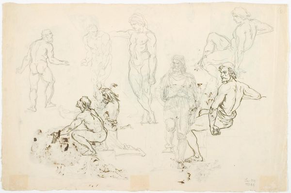 Curator: This intriguing wash drawing is by James Barry, the 18th-century Irish painter. It's titled "The Judgment of Paris." Editor: My first impression is one of tension—the three goddesses seem to surge towards Paris, whose expression is one of apprehension. Curator: Barry was deeply engaged with classical mythology, using it to explore themes of beauty, power, and, indeed, judgment. The gaze feels inherently political, don't you think? Editor: Absolutely, particularly when understanding how the Royal Academy influenced Barry's work. The image is a study, allowing us into his artistic process. This glimpse behind the curtain really highlights the social and institutional pressures he was under. Curator: And how those pressures, and the patriarchal structures inherent within them, influenced his representation of women. Editor: Precisely. It offers a rich view into the artistic climate of the time. Curator: Indeed, it encourages a deeper analysis of the power dynamics at play. Editor: And allows us to reflect on the politics of beauty and the lasting legacy of such artworks.