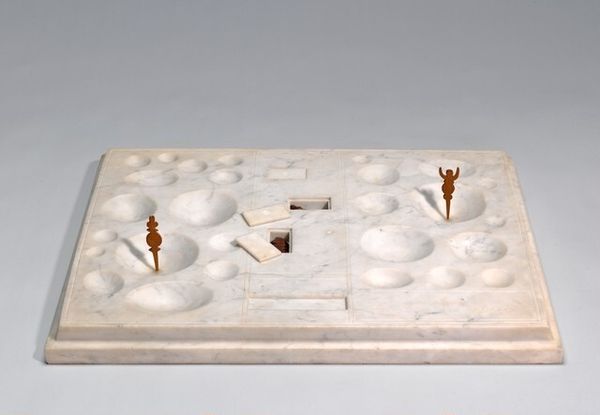 Curator: Oh, wow, it's like a tiny golden accordion playing snapshots of another world. There’s such a fragile, intimate feel. Editor: Indeed. We are looking at "[Miniature Wedding Album of General Tom Thumb and Lavinia Warren]", an albumen print piece dating back to 1862-1864 by Mathew B. Brady. These miniatures really encapsulate a Victorian fascination with…well, spectacle, I suppose. Curator: Spectacle is right. It feels almost precious, this little chronicle of what was essentially a… public fairy tale? Did people really believe in this curated love? Editor: That’s a complex question. Tom Thumb and Lavinia Warren, both people of short stature, were celebrities, carefully crafted by P.T. Barnum, to cater to society's peculiar fascinations. Their wedding was a media frenzy! To present their love in this lavish little package underscores how commodified their very identities were. Curator: There’s definitely a twinge of something bittersweet in that. You look at the meticulous detail, the ornate case and you wonder if this artifact represents love, or performance. Or perhaps, even stranger—love AS performance? Editor: I would agree that’s the question the work raises. It is not simply a celebration; it prompts consideration of exploitation, the gaze, and even access. Brady himself was famous for his Civil War photography. His lens held immense social weight, making him an active participant in how Americans understood identity and history. So we can also ask ourselves about *his* relationship to that gaze when looking at a project like this. Curator: It definitely shifts something in the way you consider what Brady was trying to achieve. Maybe even forces a slight queasiness. This delicate little book holds much bigger, thornier stories than one initially assumes! Editor: Precisely. What appears at first to be an adorable romantic artifact unlocks wider socio-political conversations about commodification, identity and power. I always see echoes of contemporary debates when observing art such as this album. Curator: Well, I’ll never see a miniature anything the same way again! Talk about holding worlds within worlds.