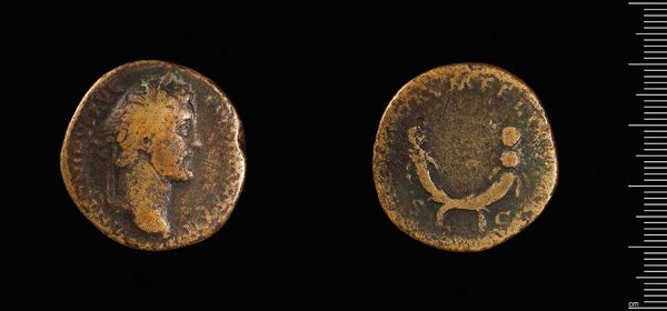 Editor: This is a Sestertius, or Roman coin, of Antoninus Pius, currently held at the Harvard Art Museums. It looks worn, of course, but I'm struck by how it functions as both currency and propaganda. What do you make of the imagery? Curator: Coins such as this served as powerful tools for imperial messaging. Consider the portrait of Antoninus Pius: it's not just a likeness, but a carefully crafted image of authority and virtue meant for wide circulation. How does this compare to other forms of public art from that era? Editor: I suppose it's like a miniature sculpture, but distributed much more broadly than a statue in a forum. So its reach was unparalleled? Curator: Precisely. And the imagery on the reverse, often depicting deities or allegorical figures, reinforced the emperor's connection to the gods and the prosperity of the empire. This coin is a fascinating artifact, revealing the intersection of art, politics, and daily life in ancient Rome. Editor: Absolutely, I’ll never look at a coin the same way again!