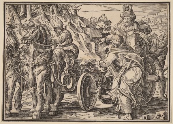 Curator: What strikes me immediately about this drawing is the rather static, almost frozen quality, despite the implied subject of a triumph. Editor: Indeed. This is Hans Friedrich Schorer's "The Triumph of Cybele, after Paolo Fiammingo's 'Triumph of Earth,'" dating to 1634. It's currently housed here at the Metropolitan Museum of Art, rendered in pen and brown ink with gray wash. Its very existence speaks to the artistic dialogues of the time. Curator: Ah, Cybele! The great mother goddess. Notice how she sits enthroned on the chariot, but there is something…restrained about the depiction. Is it a reflection on the anxieties regarding female power, channeling that power into symbolism rather than actual force? Editor: That is insightful. Schorer recreates Fiammingo's allegorical depiction. By its presence in print form, it served to disseminate and codify imagery tied to feminine authority but within a very specific framework. Curator: And consider the lions. Always symbolic of Cybele's power. Here they appear more like docile companions rather than ferocious guardians. Are we meant to interpret this as dominion *over* nature or a harmonious balance *with* it? Editor: Given the period, I am tempted to say control is key here. The goddess tames not just beasts, but the fertile earth itself. Yet, the composition lacks true dynamism; everything is carefully arranged. Curator: This recalls an idea of order amidst chaos, especially with the period’s societal structures being in a flux, a point that Baroque art frequently addressed. The figures are idealized, but there is little hint of personal story. Editor: A significant piece in understanding both the period and its negotiation of symbolic power structures, especially concerning gender, the tension between the drawing's apparent dynamism, its reliance on well-established iconographic types and, yes, a kind of latent suppression, says so much about art as an articulation of social commentary. Curator: I leave seeing echoes of archetypes that continue to reverberate, reminding us of how visual symbols cement enduring emotional, cultural, and even psychological values. Editor: Absolutely. This has certainly shifted my perspective, emphasizing the importance of viewing it not just as art but as a crucial artifact within a complex socio-political environment.