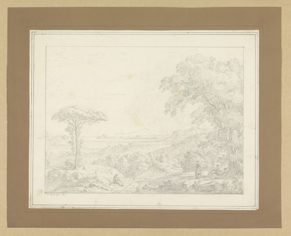 This landscape with three people in the foreground was made by Christoph Heinrich Kniep sometime between the late 18th and early 19th century. Looking at this work, we can consider how it creates meaning through visual codes and cultural references. The clothing of the figures implies that they were likely working class and perhaps involved in agriculture or animal husbandry. The scene is set in Italy and evokes a sense of pastoral tranquility. Kniep was originally from Hildesheim, Germany, but spent much of his life in Italy where he worked as a draughtsman, and we can see this biography reflected in the subject of the artwork. As historians, we can use sources such as letters, travel journals and other artworks from the period to better understand the meaning and significance of this landscape. The interpretation of art is contingent on social and institutional context, and our understanding of Kniep’s landscape deepens when we consider its relation to a network of cultural, economic and historical forces.