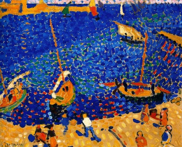 Editor: So, we're looking at André Derain's "The Port of Collioure" from 1905. It's an oil painting, and what immediately strikes me is how vibrant and almost chaotic the colors are. There's no attempt to realistically represent the scene. How do you interpret this work in its historical context? Curator: It's precisely this "vibrant chaos" that defines its historical impact. "The Port of Collioure" is a pivotal Fauvist work. Consider the art world of 1905 – still clinging to academic realism. Then, Derain explodes onto the scene with pure, unmodulated color applied in seemingly arbitrary ways. This wasn't just a stylistic choice, it was a challenge to the established art institutions and the very idea of what painting could be. Do you notice how line and form are almost secondary to color itself? Editor: I do. It's as if the colors create the shapes, rather than the other way around. But how was this received by the public at the time? Curator: Shock, mostly! Think about the Salon d'Automne where these Fauvist works were first displayed. Critics were outraged. They saw it as a complete abandonment of skill and tradition, a sign of societal decay even. But this outrage also generated interest, attracting a younger generation of artists eager to break free from the old constraints. In a way, the controversial reception was crucial in establishing Fauvism's importance and its influence on later avant-garde movements. The politics of the art world then were ripe for this kind of rebellion. Editor: So, the initial negative reaction actually fueled its success? It’s amazing to think how different the public perception of art can be at different times. Curator: Precisely. It reminds us that art is always in dialogue with its time, reflecting and shaping the cultural and social landscape.