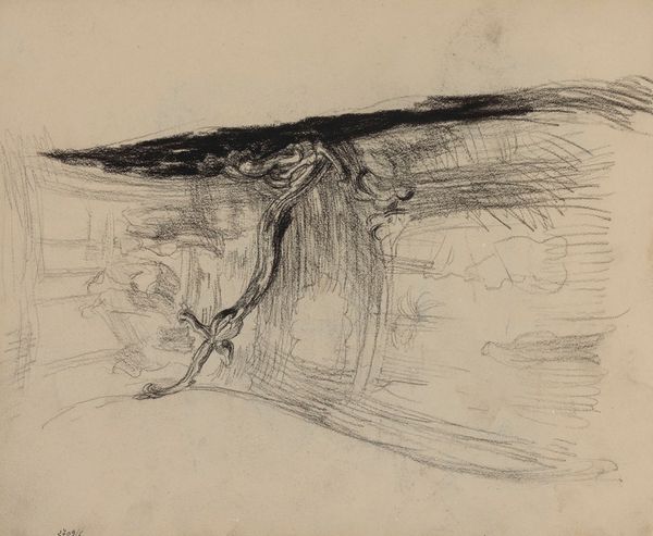 Curator: Ah, this Ronald Bladen drawing… It looks like he produced this piece between 1946 and 1947, using graphite and pencil. I always found it strangely captivating. Editor: Captivating is one word for it. My first impression is disorientation; this feels like something seen in a nightmare. Darkly unsettling. Curator: Precisely! There’s an unease here, a searching… Look at the upper figure. Its form is barely defined. And below, those concentric circles—almost like a whirlpool, a drain… a pull towards something unknown. Do you see that hint of figuration? Editor: Yes, though 'hint' is generous! I find its strength more in the composition than the subject. Notice the severe contrast created by the circular form’s radiating lines juxtaposed against the gestural shading, how the radiating darks are echoed across the whole image? That tension is really something. Curator: Bladen was exploring abstraction, yes, but always tethered to the human form, the figure as a starting point, something vaguely recognizable which morphs and melts. Maybe this is the real nightmare fuel, something real distorted into something else. Editor: Agreed. The lack of hard lines, the blending, invites the viewer to create form—or dread. What I love here is that we can sense the *attempt* at realism but ultimately, the artist opted for a more elemental depiction, more symbolic. Curator: This work has that restless energy. Bladen’s move towards larger-scale sculpture makes so much sense, you see the origin of those concerns with space, volume, and impact within this smaller, very intense frame. Editor: True. It's amazing how a simple graphite and pencil drawing can feel so monumental, holding so much implied kinetic energy. I almost hear it. Curator: Yes, and that resonance stays with you. It's a dark siren song of a drawing. Editor: Definitely a potent piece, indeed a compelling prelude to Bladen’s future explorations in three dimensions, offering a shadowy glimpse into his artistic genesis.