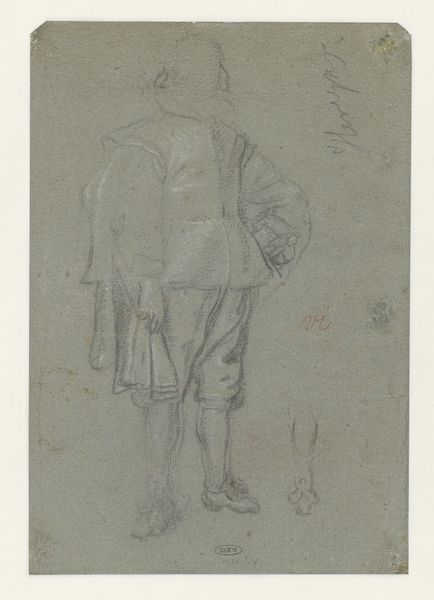 Curator: Well, that’s an intriguing first impression. Shall we delve deeper? This is “Armed Arab Leaning Against a Wall,” a graphite drawing on paper by Charles Bargue. It currently resides here at The Art Institute of Chicago. Editor: It looks unfinished, like a preliminary sketch, almost fleeting. I immediately zoom in on the layering and visible graphite marks. The hasty quality makes me curious about the artist's process, perhaps even the paper's texture and sourcing at the time. Curator: Bargue, an instructor, created such drawings as models. These were reproduced in lithograph for art students and artisans. The Orientalist theme placed this within a broader European fascination. Its availability shaped artistic vision and cultural perspective, certainly. Editor: Interesting, so this was essentially a mass-produced training exercise employing Orientalist themes? Considering the social context of production is important here. What narratives were perpetuated through these reproductions and what roles did power structures play? Was Bargue aware of that social play? Curator: Precisely! It begs the question: what did these drawings accomplish beyond technical skill? How did they shape the collective understanding and perception of "the Other" during this era, not only for artists and students, but the general public as they become ever more disseminated? Editor: The medium – graphite on paper – also suggests accessibility. It wasn’t about high-end materials; it was about affordability and the widespread training in certain skills of academic drawing as labor and standardized teaching. A democratic intent perhaps, if paradoxically harnessed in service of what one might now call a "colonial gaze." Curator: Indeed. Its value, perhaps, isn't in its aesthetic “completion,” but in the way it illuminates the complex interplay between artistic pedagogy, the market for art supplies, and societal ideologies of the time. Editor: Ultimately, this seemingly simple drawing is a portal into understanding artistic training, distribution, and Orientalism's impact on society. Thank you. Curator: Yes, I agree, a lens into understanding artistic conventions, colonial era politics, and a moment frozen in time for posterity.