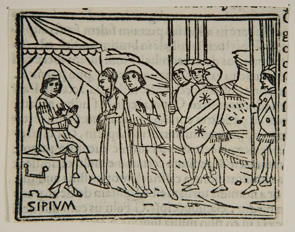 Curator: This woodcut, "Book XXII.7. Romans hear of devastation at the Thrasimenus," depicts a scene of profound grief. Editor: It’s stark. The rough lines and the dramatic poses... it feels almost like a stage play about suffering. Curator: Indeed. The division of the space accentuates the communal grief in contrast with the private despair, reflective of how public tragedy impacts individual lives. Editor: And the medium itself—a humble woodcut—lends a certain weight to the subject matter, reminding us of the historical significance and means of production. It's raw, direct, like the news it conveys. Curator: The artist, though anonymous, understood the power of imagery to shape public sentiment and historical memory. Editor: Seeing the tangible marks of the carving, the texture of the wood... it connects us to both the story and the human labor that went into its creation. Curator: Precisely. It prompts a reflection on the social context of disseminating information and art. Editor: It does, it makes you think about the echoes of such events and how they reverberate through time and touch us all.