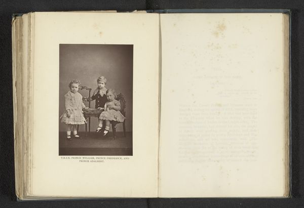 Curator: Before us, we have a photographic print titled "Study," attributed to Hemperley, created before 1895. It appears to be part of a bound volume. Editor: Immediately, I’m struck by the hazy, dreamlike quality of the image. The soft contrast and almost painterly rendering lend it an air of nostalgia, or perhaps idealized beauty. The vertical composition also adds to this sentiment. Curator: I agree; let’s consider the composition a little further. Notice the way the light catches the fabric of their gowns. It emphasizes form. The tonal range is quite subtle. Editor: The figures evoke strong associations. The dresses and parasols suggest the delicate symbolism of youth and innocence. This work suggests ideas of status and a particular era, a society preoccupied with refinement and a carefully cultivated public image. Curator: Absolutely, but observe how Hemperley also balances realism with formal arrangements. There is a clear sense of depth through the arrangement of the figures, while the surface details offer contrasting linear versus blurred photographic spaces. Editor: Beyond the formal elements, the picture hints at the performative nature of social presentation in this period. A constructed facade; are we seeing authentic moments of interaction between these three models? Curator: It's definitely an intriguing piece. Looking closer reveals that even with these posed subjects there's much consideration paid to structure. I especially like the distribution of dark and light spaces, it provides compositional balance. Editor: Ultimately, I am reminded how symbols operate on multiple layers; there's personal emotion mixed with societal messages, allowing visual works to transcend one simple reading. Curator: I concur. The photo functions on a conceptual level because it provides evidence that images continue speaking even after the cultural and technical landscapes undergo complete transformation.