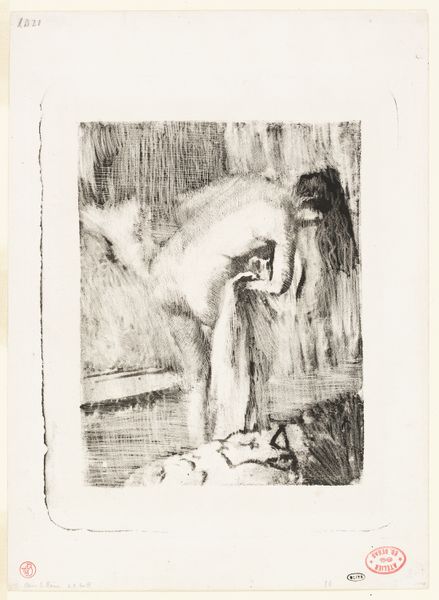 This is an etching by Edgar Degas, "Après le Bain II." The intimate scene captures a woman drying herself, a timeless act of purification and renewal. The motif of the bathing woman has flowed through art history, from ancient Roman frescoes to Renaissance paintings, each era imbuing it with new meaning. Here, the woman’s posture, bent and vulnerable, echoes classical depictions of Venus, yet Degas strips away the mythological pretense. Consider the emotional weight of this image: the private moment made public, the tension between voyeurism and empathy. This act of bathing is a return to origins, to a primal state of cleansing, inviting us to contemplate our own relationship with the body and its rituals. The image resonates with our collective memory, engaging us in a silent dialogue about vulnerability, beauty, and the passage of time. It is a modern echo of an age-old theme, continuously resurfacing, evolving, and inviting us to reflect on our shared human experience.
