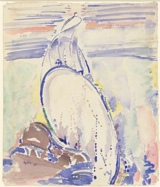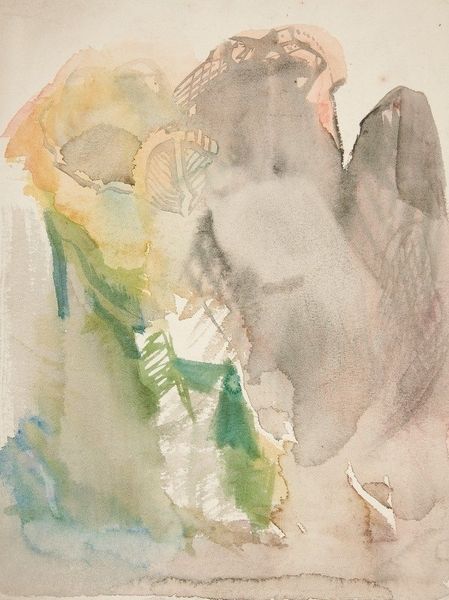 Curator: Jo Baer's "Renvers," painted in 1980, employs watercolor and acrylic on canvas to present a series of enigmatic images. What are your first impressions? Editor: A dreamy, almost spectral quality dominates. The ethereal washes of color create a sense of movement and suspension, while the horses' fragmented forms feel…disquieting. Curator: Baer, known for her engagement with minimalism, transitioned to a more representational style in the late '70s. This piece reflects that shift, referencing classical equestrian themes. How might those prior associations resonate with this painting, however altered? Editor: Formally, I'm struck by the repetition of the horse motif—a fragmented equine presence is distributed across the canvas. Note how she returns to that horse head motif multiple times. And, yes, the classical forms suggest perhaps a critique or deconstruction of idealized representations. Curator: Indeed. Baer challenged conventional notions of representation. We have to consider also that, for centuries, equestrian portraits symbolized power and status. By dissolving the integrity of that traditional symbol she invites us to ask whether such grand narratives can persist intact after the socio-political upheavals of the 20th century. Editor: The washes and layering have this quality about them, this almost unconscious unfolding as she lays it all bare. The choice of watercolors contributes to the impression of fragility, an erosion of monumentality. How do you read those curious, stamen-like shapes aligned at the very top left and echoed by figures to the bottom? Curator: The botanic elements and attenuated figures serve to confound easy interpretation. Their starkly formal presence further pushes back against the notion of the triumphant or traditionally symbolic rendering of horses. There seems something elegiac being worked through here. Editor: I find that especially reflected in the tonal range, which hovers gently between illumination and fading shadows. It does evoke memory and distance. Curator: It's an insightful interpretation of a dream that probes history and experience and makes this artwork truly special, challenging our notions of beauty. Editor: Yes. Beyond just representational change, “Renvers” is actually compelling me to appreciate that there is beauty even in what is imperfectly portrayed.
